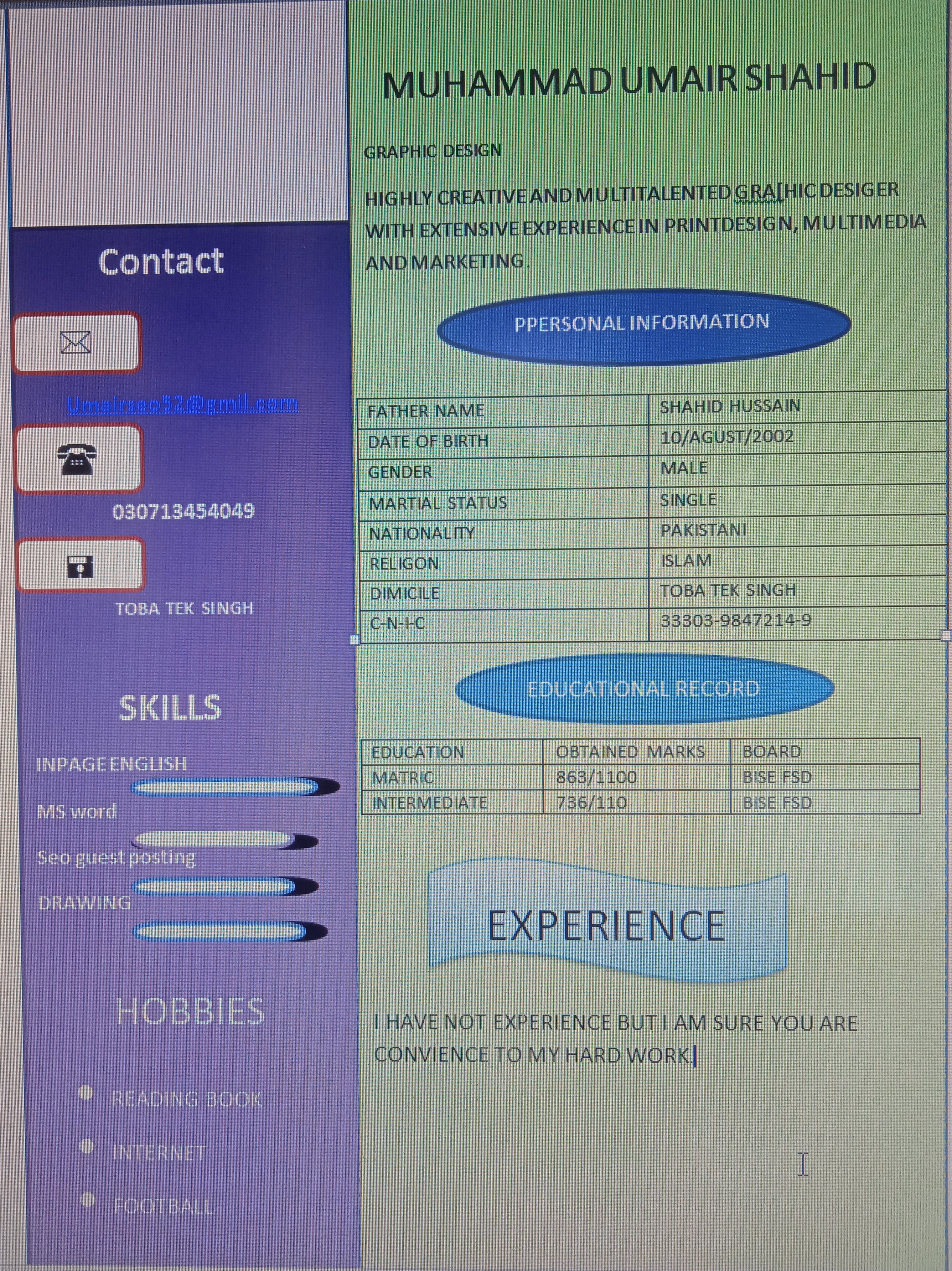 I am able to multiply task on daily basis. I Use a creative approaches to problem solving. I am always energetic and eager to learn new skills. I am a dependable how is great at time management. I am flexible in my working hours,being able to work evening and weekend.