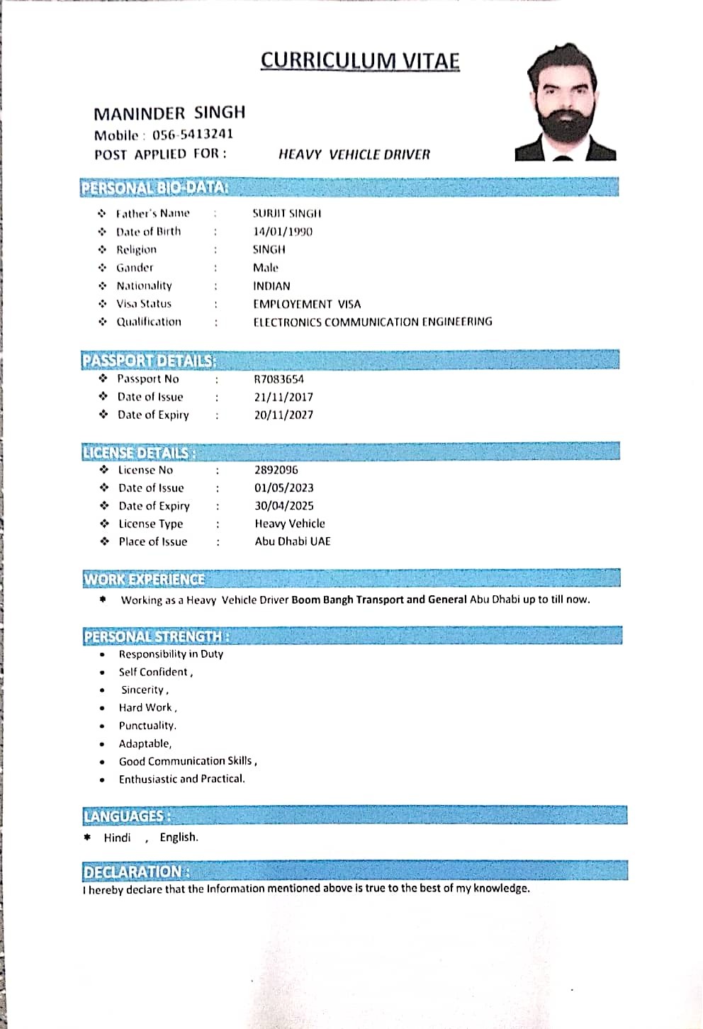 I'm Maninder singh from India bt on that time I live in uae I'm find the any sales man job .