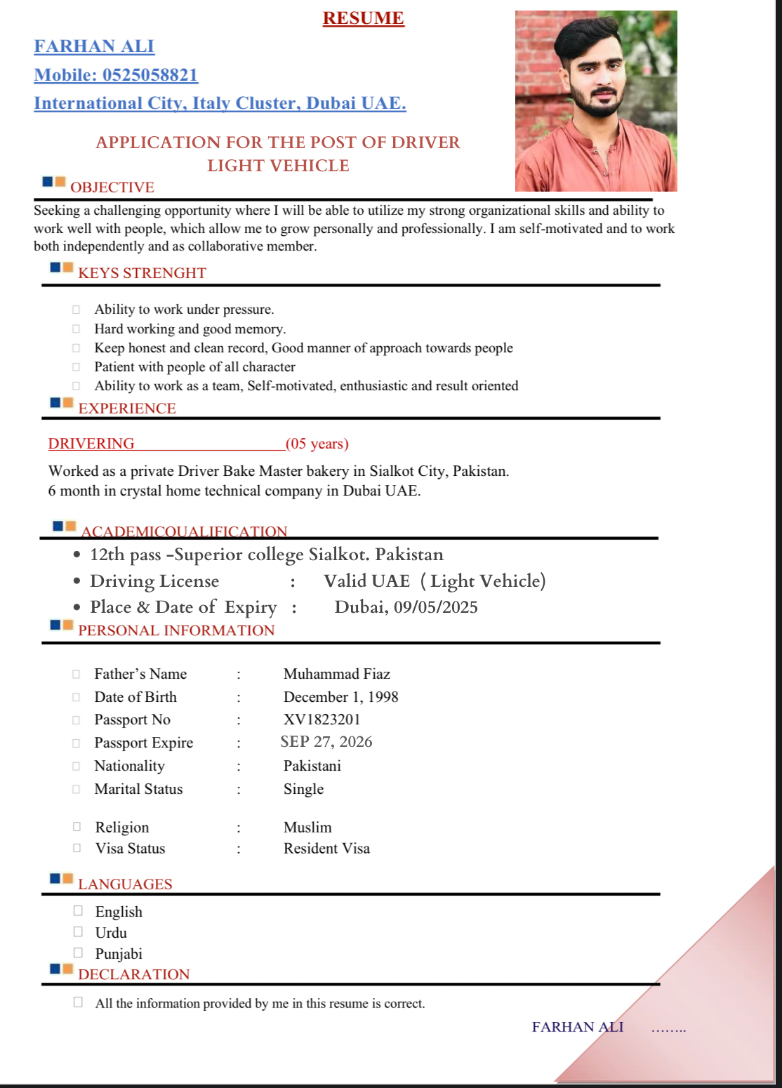 Salary: From 3000 To 3500 - UAE Dirhams (Monthly)